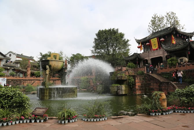 年水碼頭,古鎮(zhèn)黃龍溪,一座你來了還想來的古鎮(zhèn)。上古牌坊、古寺廟、古代民居與古榕樹、古崖墓、古渡口渾然一體,極具川西情調(diào),風(fēng)光獨具魅力。每年正月初一至大年十五,黃龍古鎮(zhèn)會舉行多種娛樂活動,如?;瘕垺⒉数?、水龍等,場面十分熱鬧。黃龍古鎮(zhèn)至今仍保留著打更的習(xí)俗,每天每兩小時打一次更,游人在此可真正感覺到黃龍鎮(zhèn)的古樸民風(fēng)。